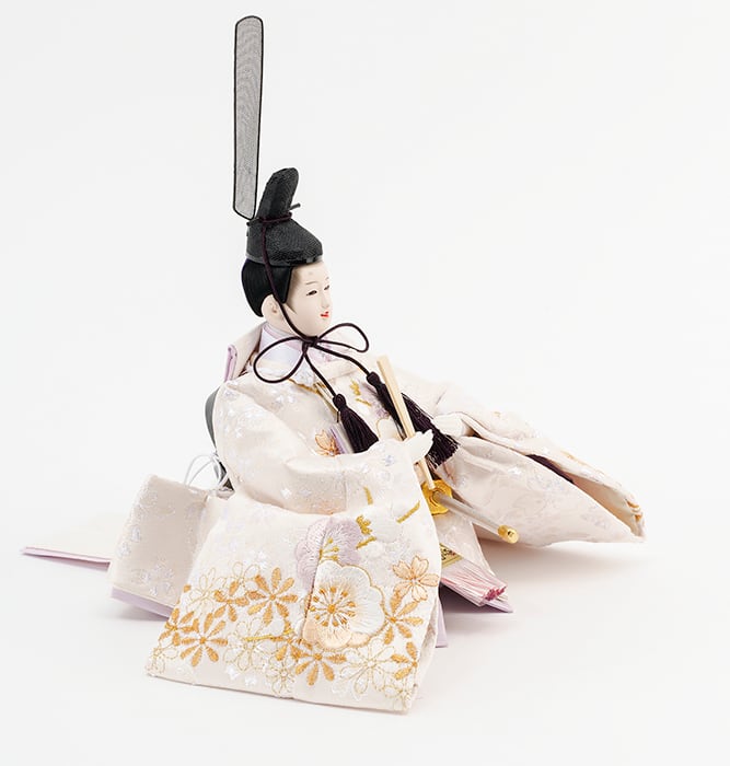 ※男雛の正面にあります飾り帯のビニールや男雛・女雛の袴を包んでいるビニールは外さないでください。
