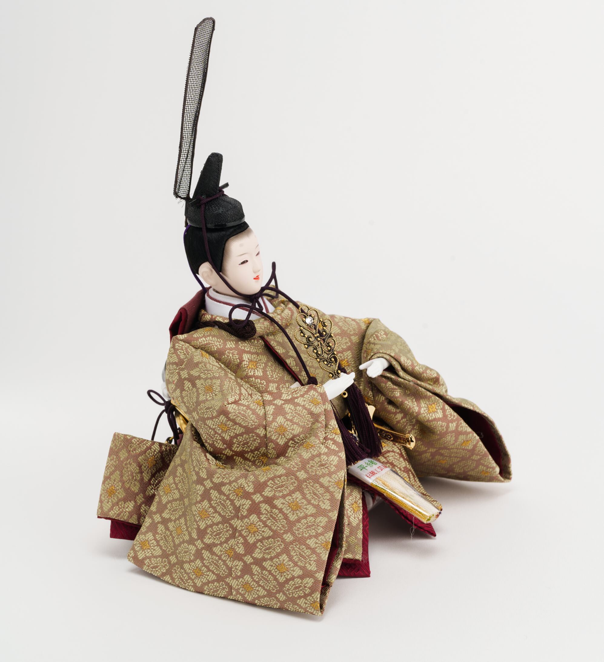 ※男雛の正面にあります飾り帯のビニールや男雛・女雛の袴を包んでいるビニールは外さないでください。