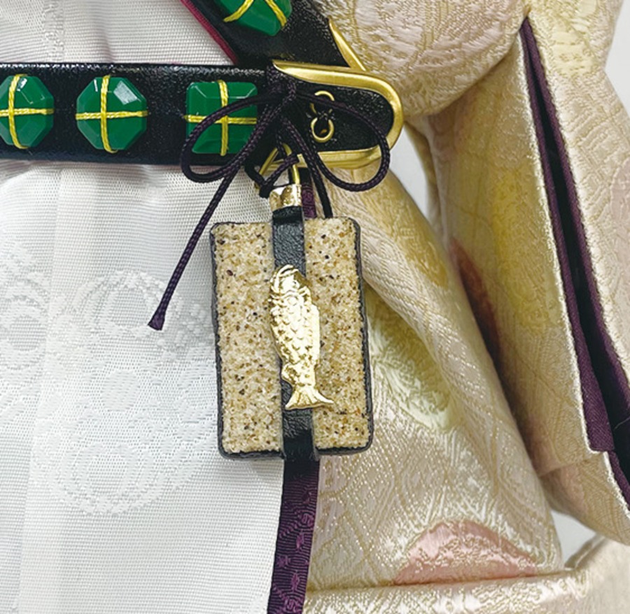 束帯を構成する要素の一つで、石帯の右腰に下げた装飾品。宮中に出入りする際の符として用いられていました